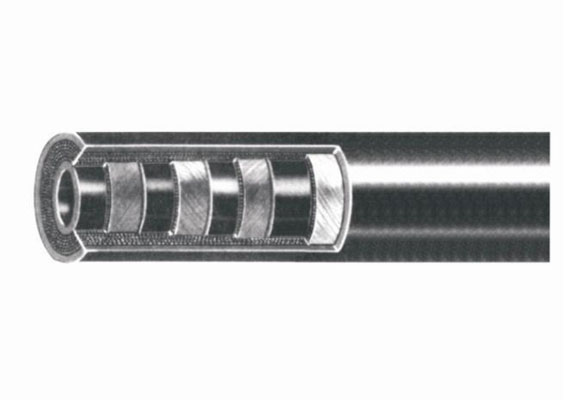 inner tube of oil resistant synthetic rubber, multiple 1 spiral plies of steel wire wrapped in alternating directions, and an oil and weather resistant synthetic " rubber cover.
